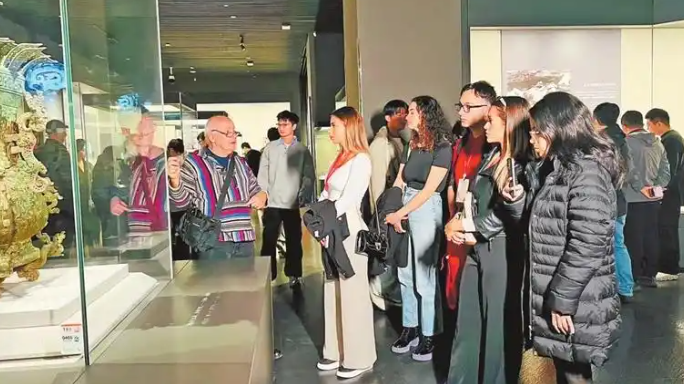 人群中,一位美国青年两眼放光、兴奋异常。从小对中华文化充满浓厚兴趣的他,终于能够一睹实物的风采。